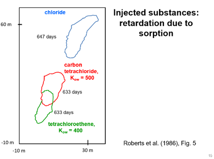 (5) References: Roberts, P.V., M.N. Goltz and D.M. Mackay, 1986, A natural gradient experiment on solute transport in a sand aquifer 3. Retardation estimates and mass balances of organic solutes, Water Resources Research, 22:13:2047-2058