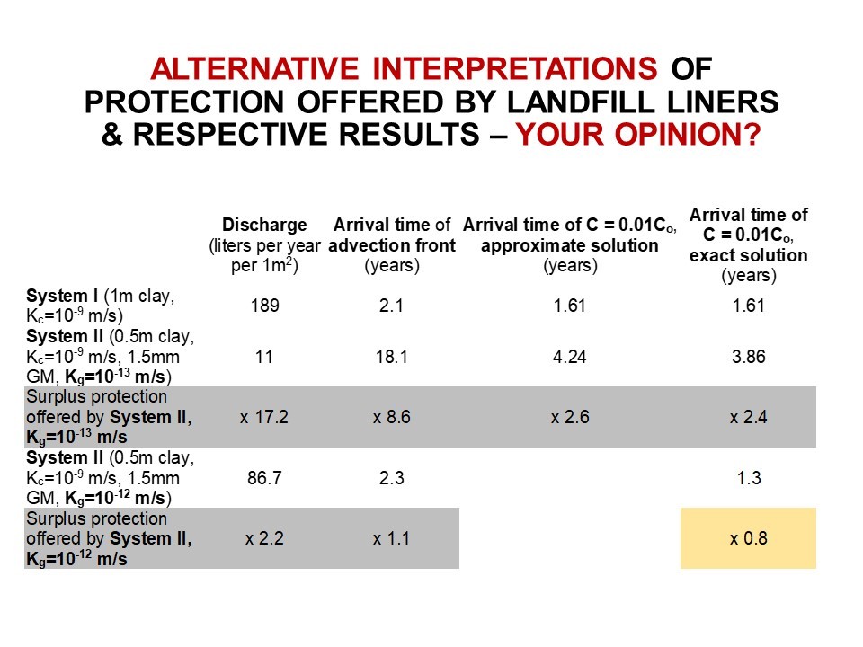 (3) Descriptive Title of Sample: Quantifying protection offered by landfill liners using different measures and respective detailed calculations